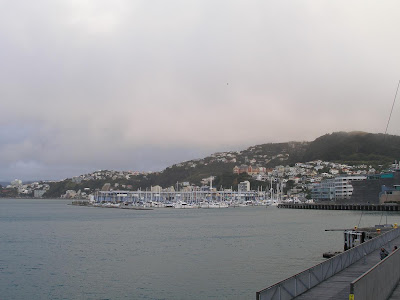 The thing about a Wellington winter, however, is that wind and water are added to the mix. In fact, I suspect that the city engineers, following the progressive model of the YHA Wellington City (the youth hostel at which we're initially staying) and its eco-friendly showerheads, have taken it upon themselves to conserve the region's water resources by aerating the atmosphere itself, with the result that it doesn't rain, which would involve the typical downward movement of precipitation, but spritz. The local meteorologists, to my knowledge, do not use this term, which is misleadingly docile, though yesterday The Dominion Post did proclaim, at the top of page 1: "A particularly foul, miserable and revolting weekend."
